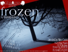 Frozen is a play by Bryony Lavery that tells the story of the disappearance of a 10-year-old girl, Rhona. The play follows Rhona's mother and killer over the years that follow. They are linked by a doctor who is studying what causes men to commit such crimes. The themes of the play include emotional paralysis and forgiveness. The play was first performed at Birmingham Repertory Theatre in 1998 and won the Best New Play Award from the Theatrical Management Association.[1] It later made its debut at the Royal National Theatre's Cottesloe Theatre on July 3, 2002.[2] In New York, Frozen opened in February 2004 at off-Broadway's Manhattan Class Company Theatre. It transferred to Broadway in May and closed in August 2004.[3] Frozen was nominated for a Tony Award for Best Play in 2004, and earned a Tony Award for Best Featured Actor in a Play (Brian F. O'Byrne).