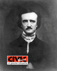 An Evening with Poewritten by Arliss Jeffries, directed by Kris Kazmierczak and performed by Lafayette Civic Theatre live on stage at the Delphi Opera House. This exciting radio play features live sound effects and the chilling tale of the master of horror, Edgar Allan Poe! An Evening With Poe promises to be as frightful as it is delightful. What better way to prepare to Halloween!