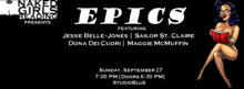 Heroes. Gods. Monsters. Rock Stars. This month, Naked Girls Reading gets larger than life when we sally forth, unarmed and unclothed, to read Epics. Regular Readers Jesse Belle-Jones and Sailor St. Claire are joined on their heroic quest by The Pelvis of Justice Maggie McMuffin and the Epic Eproveuse Dona Dei Couri to right wrongs, battle the enemy, trash hotel rooms, and win the war against clothing.