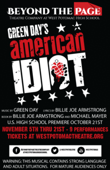 American Idiot is a high concept show with strong social messages. The show is a grim portrayal of drug use and its consequences. It contains strong language and adult situations and is intended for mature audiences only.