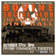 Join the Bovines as they host their first great evening of Americana song at the beautiful and intimate The Pocono Community Theater. Bred on the northern banks of the Delaware River, Bovine Social Club is a grassy, twangy, swinging breed of Americana sounds backing the thoughtful lyrics of vocalist and philosopher, Samuel Saint Thomas. Their carefully crafted twangrass songs of longing, loving, picnicking, gardening, confessing, and making the days go really slow have sure become something to moo about. BSC is one of the fastest growing and most highly respected new Americana bands in the Northeast, sharing some of the finest festival and concert stages with some of the finest talent. In this rare local appearance, on October the 17th, they bring it to their hometown theater. https://www.youtube.com/user/u8plato2