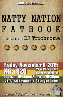Natty Nation, Fatbook & DJ Trichrome in Appleton, WI - Fri, Nov 6 at Xtra 920