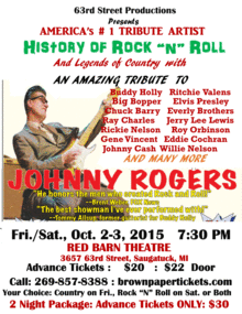 JOHNNY ROGERS SHOW : 2 Shows : Tributes to Rock n' Roll and to Country Legends