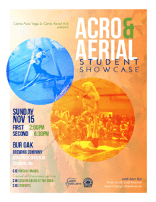 Join us for the afternoon show (2:00 pm) or and evening show (6:30 pm) at the Bur Oak Brewing Company. This event will feature performances created by Como Acro and Como Aerial Students. Acts will feature Acro Yoga, Aerial Silk, Trapeze, and Lyra (Aerial Hoop).