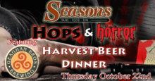 Join us if you dare at Seasons in Bangor on Thursday October 22nd for a night of incredible food, amazing local beer and Murder at The Hops & Horror Murder Mystery Harvest Beer Dinner. Can you figure out who the killer is ?