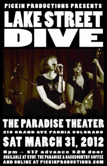 Live at the Paradise Theater in Paonia, CO ~ Lake Street Dive!  Back by popular demand.