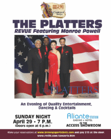 As part of the continuing RMI Concert Series, "The Platters Revue, featuring the legendary Monroe Powell" will perform at Aliante Station Casino & Hotel on Sunday, April 29. Enjoy an evening of quality entertainment, dancing and cocktails in the state-of-the-art Access Showroom.
