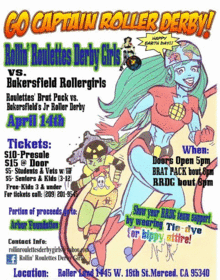 Doors open at 5 PM, with the Rollin' Roulettes Brat Pack junior derby facing off against Bakersfield's junior derby at 6.