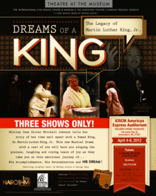 Shirley Jean Glover Mitchell Johnson tells her story of her time well spent with a famed King, Dr. Martin Luther King, Jr. This new Musical Drama, with a cast of 6, will have you singing the praises, laughing, and crying tears of joy as they take you on this emotional journey of his Accomplishments, his Determination, HIS DREAM! Features original music by Nathan Alston. CD available at http://cdbaby.com/cd/naroshmi or on iTunes (search Naroshmi).