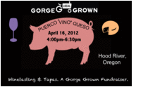 The Gorge Grown Mobile Market is the second program being supported by this event. The Mobile Market serves as an anchor for fledgling rural farmers' markets throughout the Columbia River Gorge. Last year the Mobile Market supported the communities of Stevenson and Lyle in Washington and Maupin and Mosier in Oregon. Gorge Grown aggregates a diverse delivery of food from various local producers. Then, Gorge Grown resells that product at the farmers' markets in these communities. The stability and diversity of selection available at the Mobile Market attracts customers. With this supports the markets will eventually develop a large enough customer base to attract stable vendors. Money raised from ticket sales to Puerco-Queso-Vino will go toward funding the Mobile Market program for the 2012 season. This program is currently unfunded for this year.