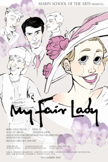 My Fair Lady opens Friday, November 6 at 7:00 p.m. in the Performing Arts Center at the Marin School of the Arts at Novato High School, 625 Arthur Street in Novato. The show runs Fridays and Saturdays at 7:00 p.m. on November 6, 7, 13, 14, 20, and 21 and Sundays at 2:00 p.m. on November 8, 15, and 22. A few limited amount of tickets are available at the door but performances sell out. It is strongly recommended to purchase tickets online at www.brownpapertickets.com or by calling (800) 838-3006. Admission is $8 for students and seniors, $25 for reserved seats and $15 for general seating.