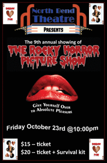 The North Bend Theatre will again be opening its doors for the 9th annual Halloween-season screening of the Rocky Horror Picture Show. Join us for the camp, horror, insanity, and live performances throughout the show with audience interaction!