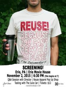 "This film isn't about our waste problem. It's about solutions. And they are everywhere! We live in a challenging time. Climate change and mass consumption is threatening our planet's existence. Excessive extraction of natural resources has created immeasurable waste and pollution. This issue is complicated and imminent. While recognition and awareness is important, direct action is by far the most effective. But traditional recycling is not enough. The reuse mission offers a more sustainable solution that everyone can be a part of. REUSE! Because You Can't Recycle The Planet follows Reuse Pro Alex Eaves' cross-country adventure to the 48 contiguous U.S. states. On his journey, he finds endless reuse solutions for our waste problem that are not only sustainable, but many of which are easy and fun! And he learns just how reuse truly benefits "people, planet, and wallet.""