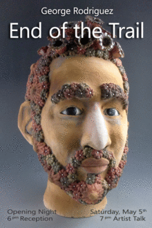 A masterful sculptor, George Rodriguez has exhibited throughout the West and Northwest... as well as storefront displays throughout Seattle. Rodriguez has been a generous member of the Pottery Northwest community since 2009, and is now celebrating the conclusion of his artist-in-residency with a fiesta and solo show: End of the Trail. The public is invited to join this celebration of friends, years passed and new horizons. Come dressed in your favorite floral attire 5 flower minimum!
