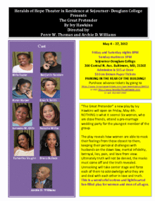 "The Great Pretender" a new play by Ivy Hawkins will open on Friday, May 4th. NOTHING is what it seems! Six women, who are close friends, attend a pre-marriage wedding party for the youngest member of the group.