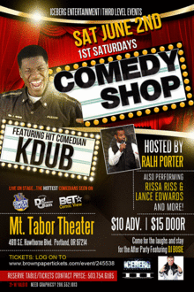 ICEBERG ENTERTAINMENT & THIRD LEVEL EVENTS 1st Saturday Comedy Shop ::Grand Opening June 2nd:: Mt Tabor 4811 S.E. Hawthorne Blvd., Portland, OR 97214