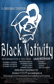 Black Nativity is a retelling of the classic Nativity story with an entirely black cast. Traditional Christmas carols are sung in gospel style, with a few songs created specifically for the show. Originally written by Langston Hughes, the show was first performed on Broadway on December 11, 1961, and was one of the first plays written by an African-American to do so. It has been performed in Boston, Massachusetts at Tremont Temple since 1969. The 160 singers are arranged by age group and vocal range, with an assortment of soloists, along with the narrator, and Mary and Joseph, who are both mute.
