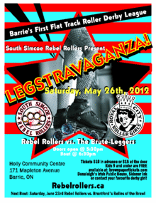|  | EventSouth Simcoe Rebel Rollers Present LEGSTRAVAGANZA!Barrie's First Flat Track Roller Derby League South Simcoe Rebel Rollers Present