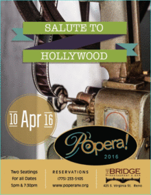Our second in the series is SALUTE TO HOLLYWOOD on April 10, 2016. Join P'Opera! as we tip our hat to the Golden Era and explore the musical offerings that Hollywood has presented from the mid-1930's to the present day.