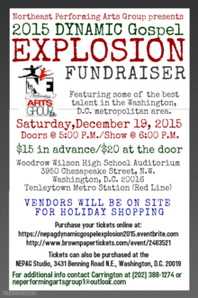 On Saturday, December 19, 2015, the Northeast Performing Arts Group (NEPAG) will host the 2015 Dynamic Gospel Explosion fundraiser at the Woodrow Wilson High School auditorium, located at 3950 Chesapeake Street, N.W.