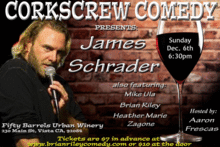 Corkscrew Comedy is proud to bring you James Schrader as our headliner in December. He recently was a finalist for San Diego's Funniest Person and headlines all over San Diego