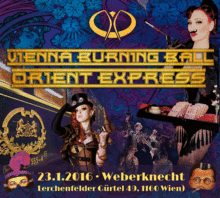 ART THEME Founded in 1883, the Orient Express train connects: Paris, Munich, Vienna, Belgrade and Istanbul; allowing speedy long distance travel through Europe and beyond. Amongst the clientele were diplomats, spies and adventurers. The train was notorious for its mystical charm, curious happenings and its famous & infamous passengers. To celebrate the 3rd Vienna Burning Ball (VBB), we take our inspiration from the historic Orient Express and other real and fantasy locomotives like the Trans-Siberian Railway, the Diamond Express, the Blue Train, the Midnight Train, the Hayabusa or the Spirit Train. Welcome aboard our train jump on the Burner Bandwagon!