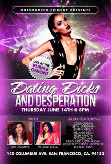 Looking to see the best female comics in the San Francisco Bay Area all in one show ? Want to hear horror jokes about dating, relationships, and motherhood with the craziest female comics? Then, look no further - come to "Branded Funny" comedy show at the renoun historic Purple Onion in San Francisco! (The Purple Onion in San Francicsc had t featured comedians such as Robin Williams, Paul Krassner, Jim Short and Tom Rhodes.!!!) "Branded Funny" Comedy Line Up Includes: Your host Stroy Moyd Featuring: Corie Gipson (Regular at Rooster T Feathers) Loren Krout (Punchline and Cobb's Comedy Club) Melanie Bega (Regular at the San Jose Improv and The Purple Onion in SF) Trish Pandya (Regular at the Purple Onion) PX Floro (Regular at the San Jose Improv) Seth Hardiman (Regular at the Purple Onion) Headliner - Justin Lucas - (Regular at the San Jose Improv, Rooster T Feathers in Sunnyvale)