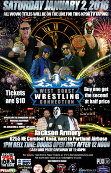 The West Coast Wrestling Connection has its next LIVE TV Tapings, Saturday January 2nd. First bell is at 1pm, doors open at 12:15pm.
