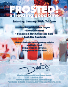 Join us for the kick-off event of Kennebunkport's Paint the Town Red month: Ice Bar at David's KPT on Saturday, January 30th at 7pm.