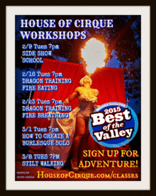 Try adventure on for size with House of Cirque! Phoenix's downtown circus school, arts, and entertainment company. Named 2015's Best of the Valley by Phoenix Magazine!