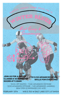 Schedule: Doors Open @9:30am Training: 10:00am-10:45am: Off-Skates-Favorite Moves and Importance of Building Strength 11:00am-11:55am: Advanced Defense With Bruiser Ego 12:00pm-12:55pm: Advanced Offense With Skull Candy 1:00-1:55pmL: Advanced Jamming with Wreckless Lunch Break: 2pm-2:30pm Scrimmages: 2:30pm-6:30pm: Open Black & White Scrimmages