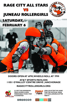 Rage City's All Stars host the Juneau Rollergirls from Alaska's capital city in a Women's Flat Track Derby Association ranking challenge game. Rage City is currently ranked 121 out of 284 worldwide teams. Not bad for a team of nine from Anchorage! Juneau brings an up and coming team who plans to smash in to the rankings the first chance they get. Come watch the most competitive all-Alaskan derby you'll see this year!