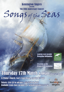 Join Kensington Singers as they celebrate their 5th birthday with a concert featuring Songs from the Seas - expect sea shanties, oceans and maybe even a seal!