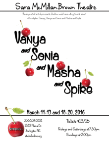 Vanya and Sonia and Masha and Spike is a comedy play written by Christopher Durang. The story revolves around the relationships of three middle-aged single siblings, two of whom live together, and takes place during a visit by the third, Masha, who supports them. They discuss their lives and loves, argue, and Masha threatens to sell the house. Some of the show's elements were derived from works of Anton Chekhov, including several character names, the play's setting in a cherry orchard, and the theme of the possible loss of an ancestral home.