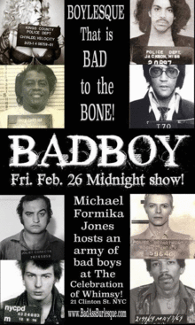 Michael Formika Jones hosts an army of bad boys bringing you decadent delinquence with their bold Boylesque behavior!