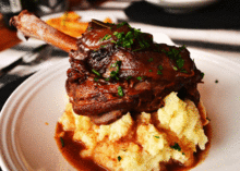 Course 3: Oregon lamb shank braised with red wine and local organic leeks. Served with roasted potatoes dressed in leek-thyme butter sauce and fresh lemon juice or Rich red lentil stew (vegetarian-friendly)