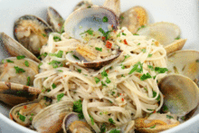 Course 2: Linguini with fresh Taylor Shellfish manila clams, cashew basil pesto cream sauce or Linguini with oyster mushrooms, cashew basil pesto cream sauce (vegetarian-friendly)