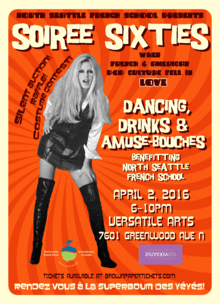 Bring your best Brigitte Bardot, Serge Gainsbourg, or Mad Men attire to a soiree benefitting the North Seattle French School! Appetizers, drinks, silent auction, raffle, costume contest and prizes!