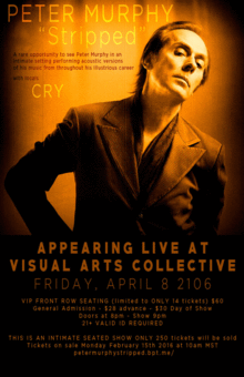 PETER MURPHY "Stripped" A rare opportunity to see Peter Murphy in an intimate setting performing acoustic versions of his music from throughout his illustrious career