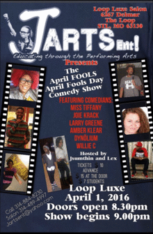 This show is to raise money to fund the filing of a non-profit organization to assist in activities for youth to do in St. Louis and surrounding areas. Removing idol time to get involved in vandalism, loitering, robbery, theft, and other negative activities, Jarts Entertainment would like to propose event opportunities to youth on a regular basis to keep them out of trouble. This also will educate them on the unknown laws, rights as citizens, possible job openings, proper dress attire for career opportunities and just general fun activities and talent shows!