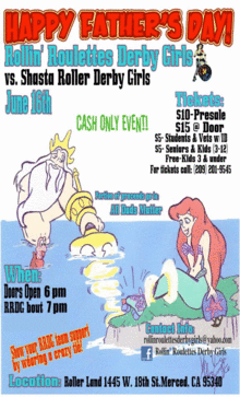 It's the Rollin' Roulettes Derby Girls vs. the Shasta Roller Derby Girls Assasins.