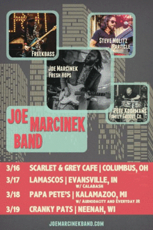 http://www.joemarcinekband.com/ http://www.freekbass.com/ https://www.facebook.com/JoeMarcinekBand/?fref=ts https://www.facebook.com/Steve-Molitz-206609639357056/ https://www.facebook.com/freekbassmusic/