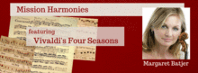 Acclaimed, violin soloist and Los Angeles Chamber Orchestra concertmaster, Margaret Batjer will perform the timeless Vivaldi's Four Seasons. The program continues with Ecos Armónicos, composed by Cal Poly professor and musicologist, Craig Russell.