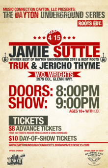 The second show in our series is on April 15th and celebrates Dayton area Roots music! This month, we're bringing you a showcase packed with stellar music from TRUK, Jericho Thyme, and our Best of Dayton Underground 2015 "1st Place and Best Roots" Winner - Jamie Suttle!