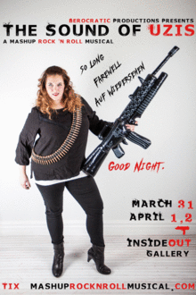 In a world that has survived countless disasters, humankind finds their most frightening threat from a race of power-hungry Nazombies bent on taking over the world. As governments collapse, humanity looks to leaders of faith for help from this evil, and a young zombie fighting warrior named Maria emerges to save the day. When the VonTrapped family is caught behind Nazombie lines, Maria is sent in to teach them how to survive. But danger may be closer than they think as the charming Baroness brings in her political advocacy group, Humans for Life After Death. With a rock n roll soundtrack and an irreverent attitude, The Sound of Uzis is a wild take on the beloved classic musical, complete with zombie dance numbers, video components, and audience participation.