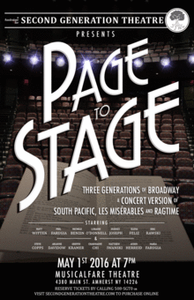 "PAGE TO STAGE: Three Generations of Broadway" features the songs of three of the best loved musicals of all time- SOUTH PACIFIC, LES MISERABLES, and RAGTIME. These beautiful stories based on novels are brought to life by Buffalo's finest theatrical talent.