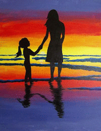 The featured paintings are "I Love Mom," "Best Mom Ever," "Motherly Love," & "Hoo Loves You" (12" X 12") and "Mother Hen" & "Mother and Child Silhouette" (16" X 20").