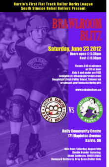 |  | EventSouth Simcoe Rebel Rollers Present BRAWLROOM BLITZ!Barrie's First Flat Track Roller Derby League South Simcoe Rebel Rollers Present