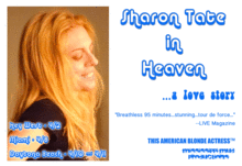 "As writer and star of Sharon Tate in Heaven, Danby executes a breathless 95 minute performance...stunning..it's a tour de force...an engaging, breathless ride through a show business figure's soul."  -- John Blenn, LIVE Magazine