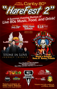 The Canby 80's Harefest is a festive summer evening ruckus of live 80's music (5 bands), food, and drink!